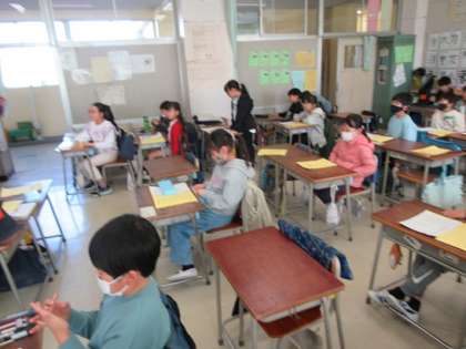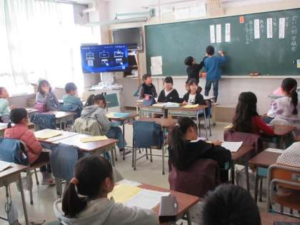 クラスのみんなで写真を撮る場所について、アイデア出し合っています。
