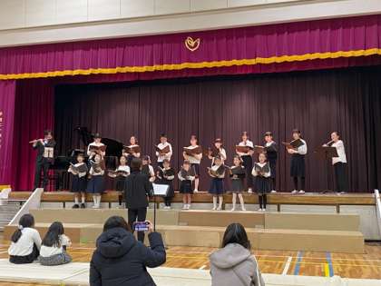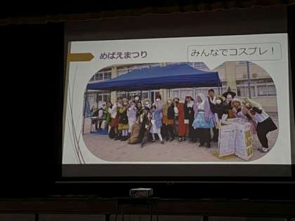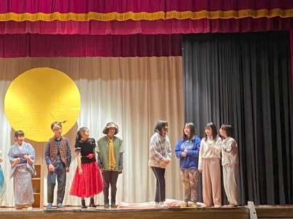 映像での発表、合唱や演奏もありました。最後の演劇クラは、舞台をいっぱいに使っての演技でした。