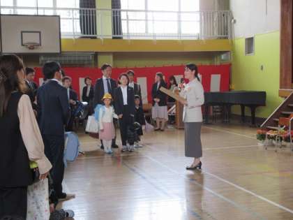 入学式、記念撮影も終わり、各クラスごとに。クラス担任よりあいさつをさせていただきました。