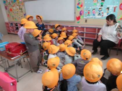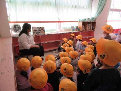 先生の読んが読んでくれる絵本に、引き込まれるようにお話に耳を傾けています。