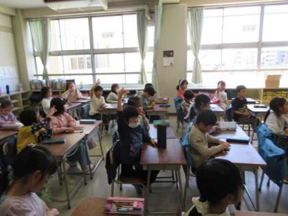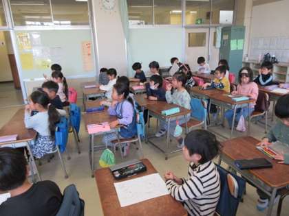 学級生活をよりよくするための活動です。1年生の時の生活を思い出し、どんな係があるとよいのかをみんなで意見を出し合います。
