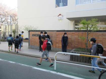 中学生のお兄さん・お姉さんとも上手に挨拶ができています。