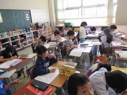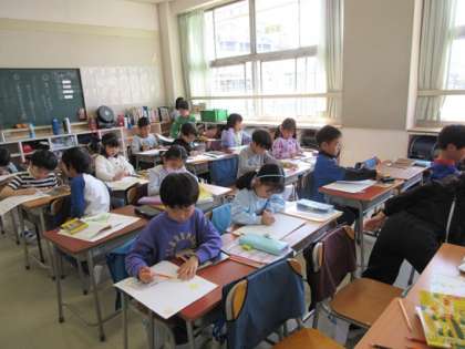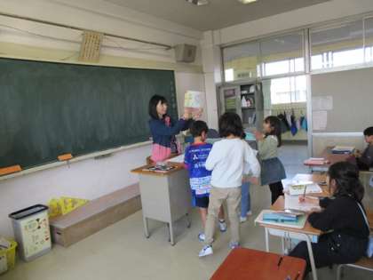 教科書に載っている春の詩を視写しました。春らしい挿絵も描いてあります。