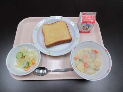 はちみつレモントースト クリームシチュー キャベツサラダ 牛乳