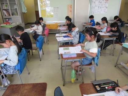 新しい学習の確かめと1年生の学習の振り返りをしています。