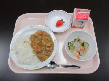 チキンカレーライス  こんにゃくサラダ  いちご  牛乳