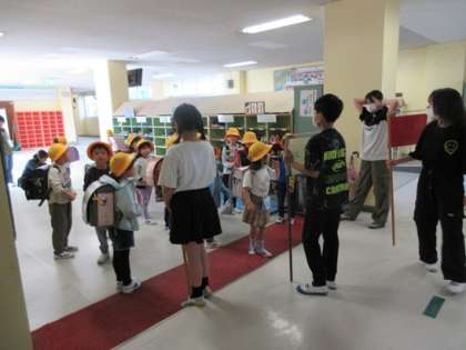 数人ごとにまとめて、6年生が教室まで誘導してくれています。