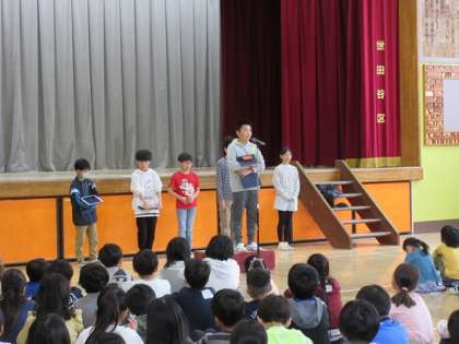 ここ数年、各学級で実施していましたが、今年度は、体育館で、全学年の前で行いました。