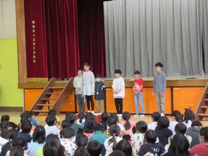 6人の6年生は、それぞれに自分で考えたテーマを元に話をしました。
