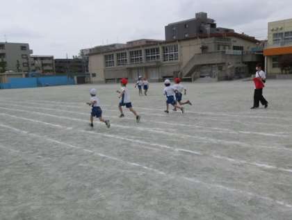 運動会に向けて、40メートル走のタイム計測です。