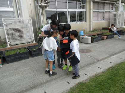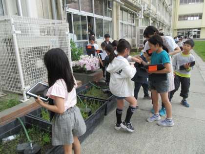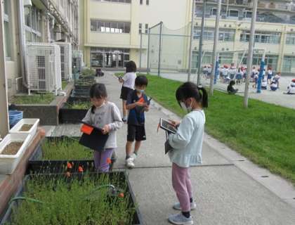 校庭の花壇に咲いている花など、春を感じさせるものを撮影しています。