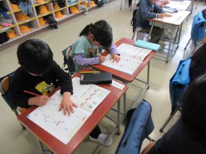 よく見て、間違えないように数字をかいたり、塗りつぶしたりします。