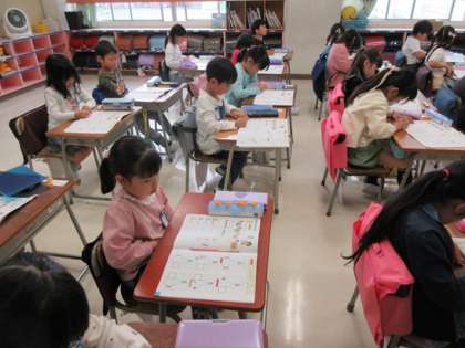 ブロックやおはじきを使うことで、言葉と量を一致させていきます。