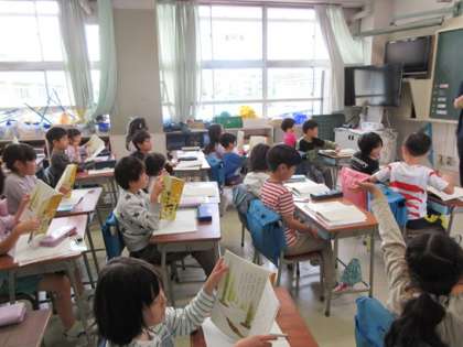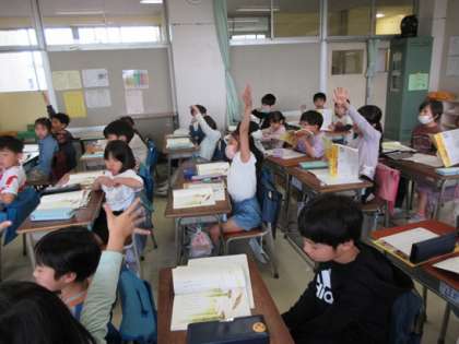 春の詩を音読しました。どんな感じがしたかを、発表していました。