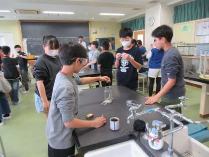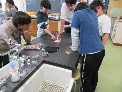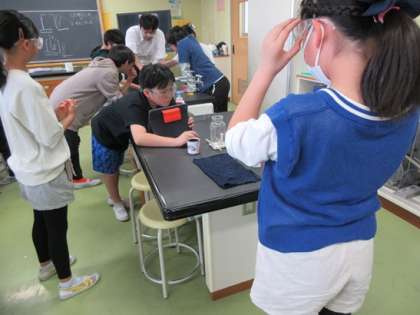 ろうそく・マッチ・線香、そこを切ってある集気びんを使っての実験です。