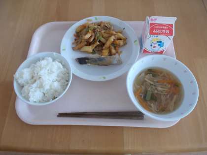 ごはん 鰆の西京焼き じゃが芋の金平 沢煮碗 牛乳