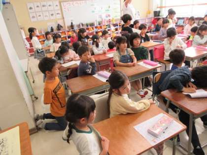 明日の学校たんけんで、一緒に回る2年3組のお兄さん・お姉さんと顔合わせです。