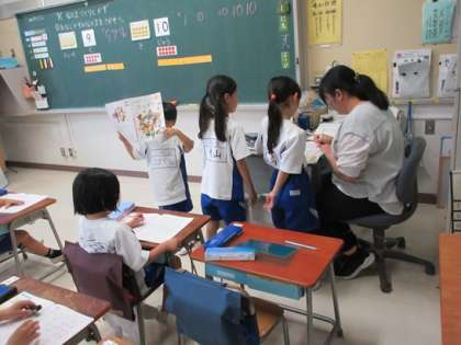 ノートやワークシートができたら、先生に確かめてもらいます。