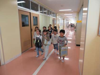 2年生のリードで、1年生と一緒に学校たんけんをしました。