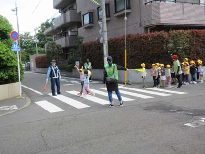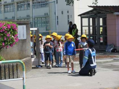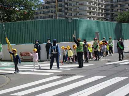 今回の交通安全教室は校庭ではなく、学校近くの交差点を利用しました。