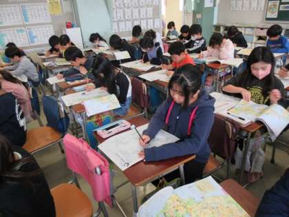 4年2組の社会科の時間です。