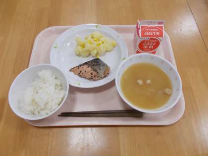 ごはん 鮭の南部焼 コーンポテト 呉汁 牛乳