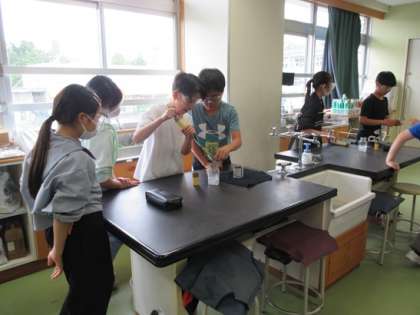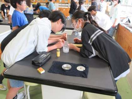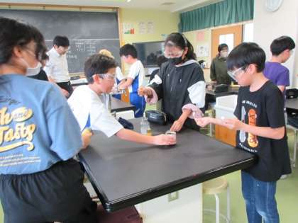燃焼前後の二酸化炭素について確かめる実験をしていました。