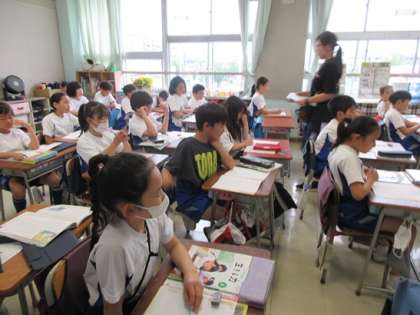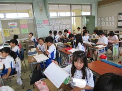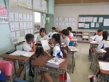 教科書の挿絵を見ながら、自分ならどうするかを考えています。