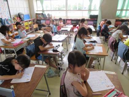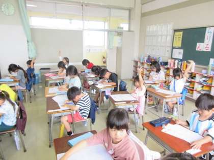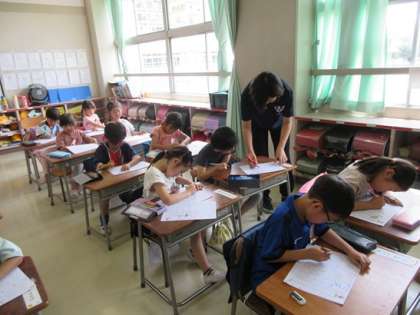 書きあがると手を挙げて、先生に確認をしてもらいます。
