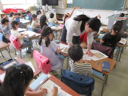 前の時間に学習したことを、学習プリントを使って、確かめの学習をします。