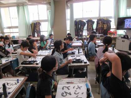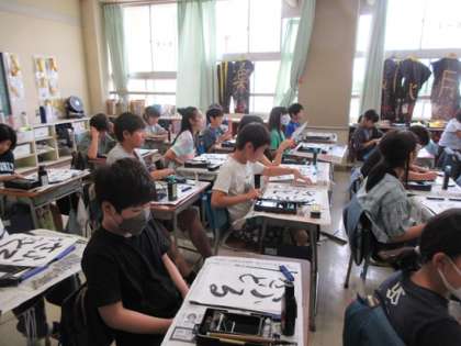 今日の課題は「ふるさと」です。毛筆でひらがなを書くのは、意外と難しいものです。