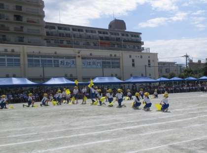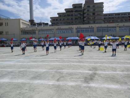 2回目の運動会を迎えた2年生。今年がクラスごとで3色の旗を振ります。
