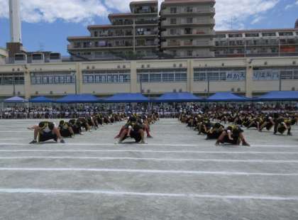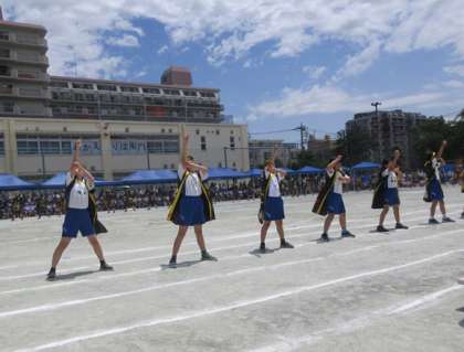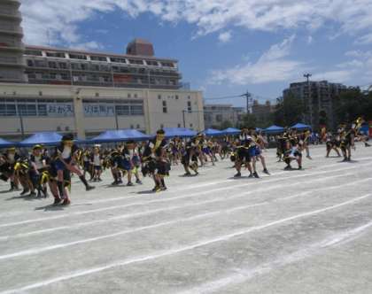 6年生から伝授された、ソーラン節を校庭いっぱいに舞います。