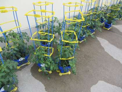 東校舎まえの2年生のミニトマトです。背も随分と伸びてきました。