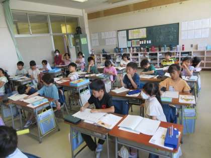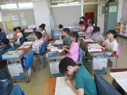 長さを計算する学習をしていました。センチとミリメートルが混ざった計算方法を考えていました。