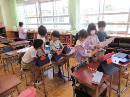 グループごとに発表のしかたを工夫し、練習をしていました。