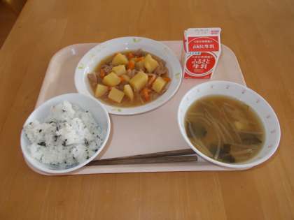 わかめごはん 肉じゃが みそ汁 牛乳