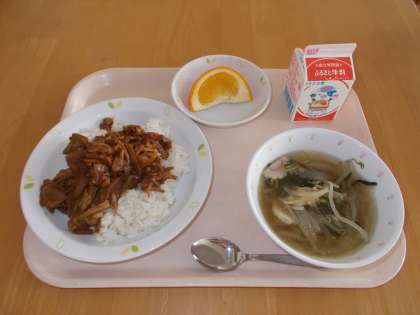 回鍋肉丼 中華スープ 夏みかん 牛乳
