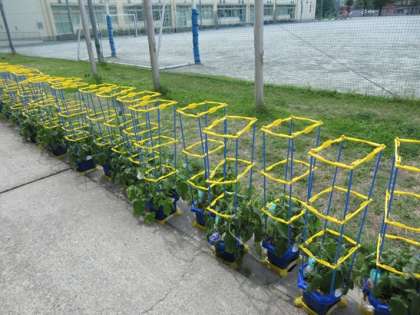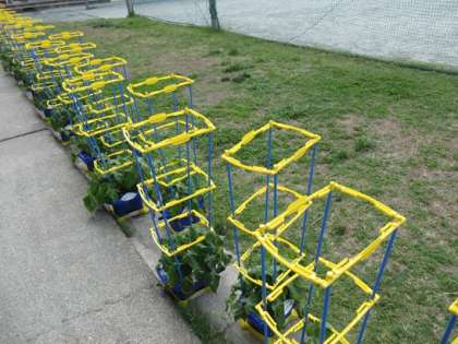 1年生のアサガオの植木鉢です。本が大きく茂り、蔓があちらこちらから出てきました。