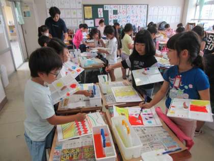 その上から、絵の具を使ってオリジナルTシャツの出来上がりです。