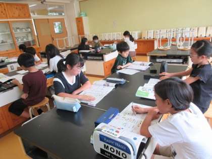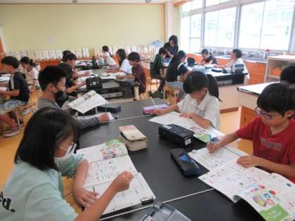 裁縫箱の中身の確認やこの後に控えている裁縫実習の予習です。