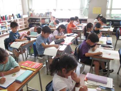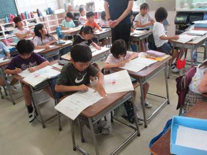 スイミーのお話を、ワークシートやノートを使って、まとめていきます。
