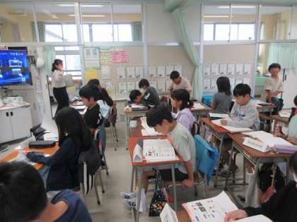 5年1組の英語の時間です。