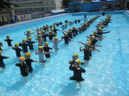2回目となった1年生の水泳の学習です。昨日天候不良のため水泳指導がなかったので、前回に比べると冷たさを感じる時間でした。