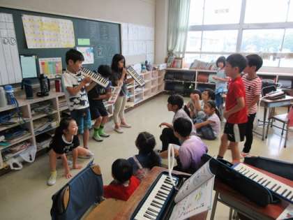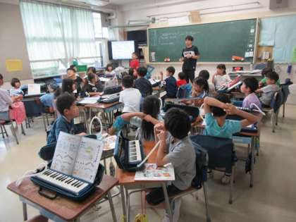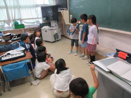 「かえるのうた」の班で合奏し、友だちに聞いてもらいました。