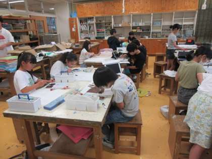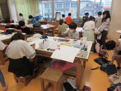 水彩画で樹木の絵を描きます。気の色を作るのに一苦労ですね。