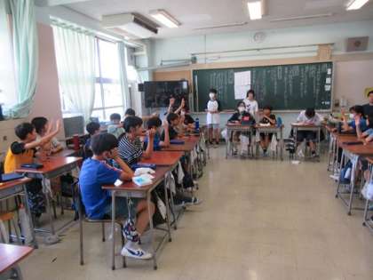 お楽しみ会の実施についてをテーマに、学級会をしていました。お互いの意見や考え方に耳を傾けながら話し合いを進めています。