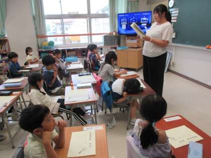 学習してきた「おおきなかぶ」の役割を決めて、登場人物の気持ちになり、音読をします。