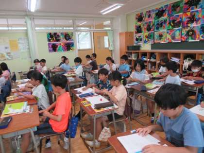学習したことを振り返りながら、理科学習の進め方を振り返っています。ノートの取り方も確認しています。