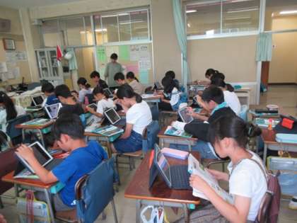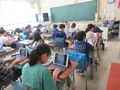 チャート図を利用しながら、日本の米作りの特徴についてまとめています。
